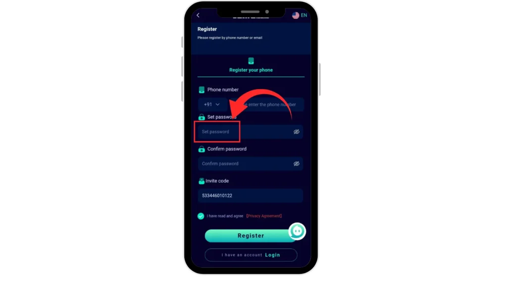 The second step in the registration form is to set a password. You must create a strong password that cannot be easily hacked. It’s better to write it down somewhere safe so that you don’t face issues later.